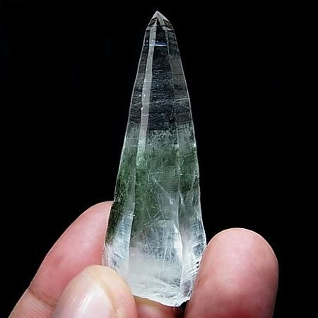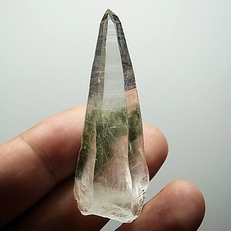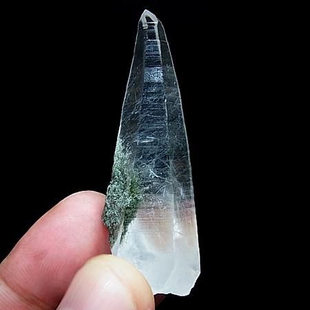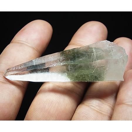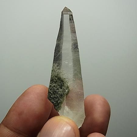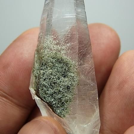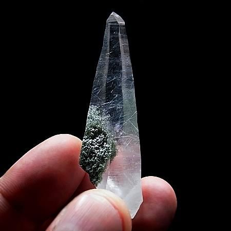 Amphibole and chlorite inclusions in quartz. Though the amphibole inclusions aren't very distinct, the combination of the chlorite inclusions coming along with it makes it quite a rare piece.