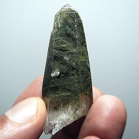 クローライト(緑泥)と角閃石がインクルードした、ヒマラヤ水晶。