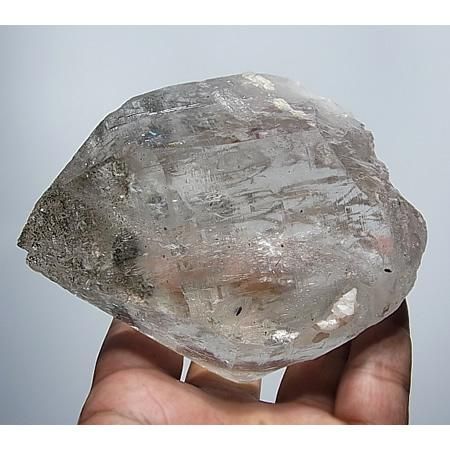 先端付近には、あまり目立ちませんが、蠕虫(ぜんちゆう)状のクローライトの付着が見られます。