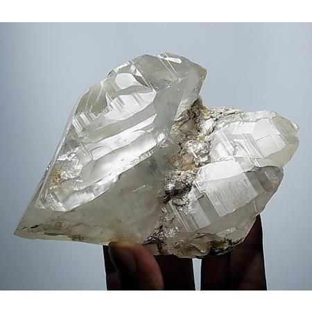 A large double terminated crystal perched on quartz matrix from Tipling- Dhading, Ganesh Himal region. This is a perfect example of the unique growth habit of Ganesh Himal crystals which have a gwindel like appearance. The terminations are very distinct and the bottom side of the crystal is also completely self healed. It is a damage free specimen having good clarity and while some parts of the crystal surface are glossy while others have a mat texture.