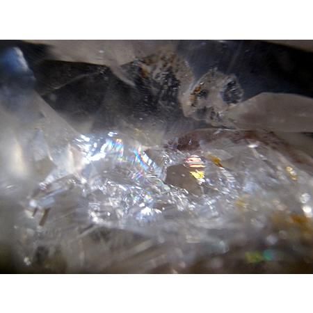 ダブルターミネーションの結晶奥深くから現れる虹が、煌めくような美しさを見せています。