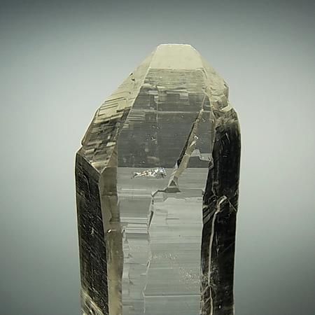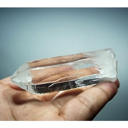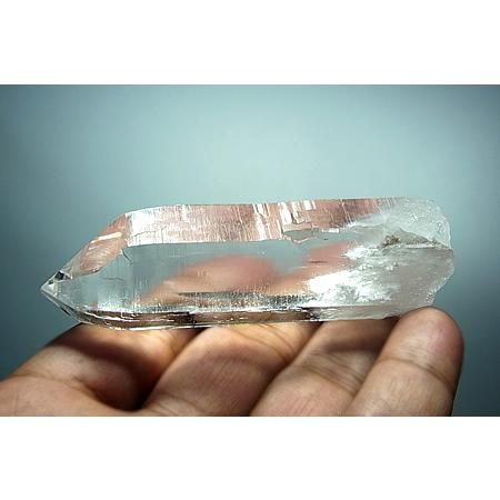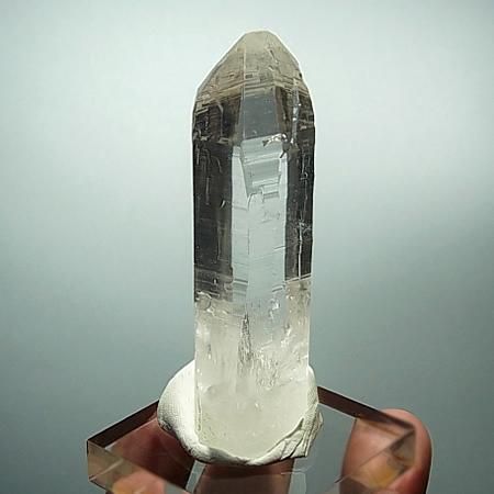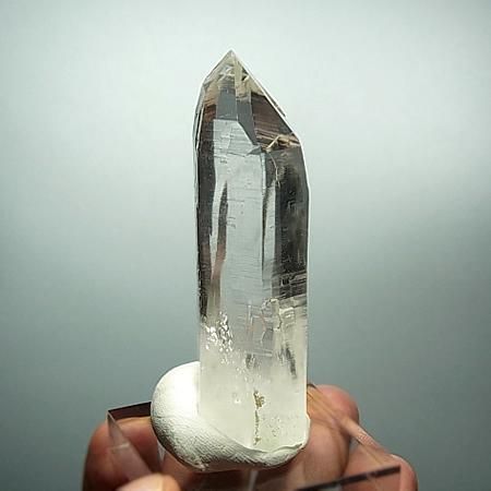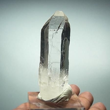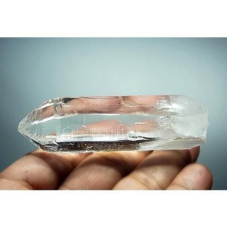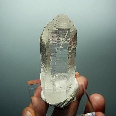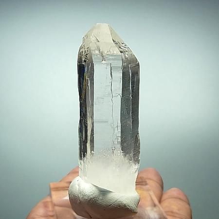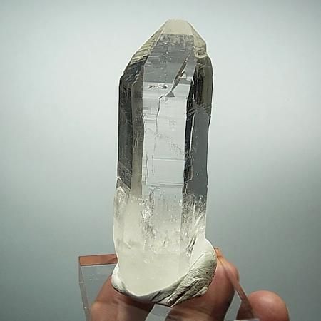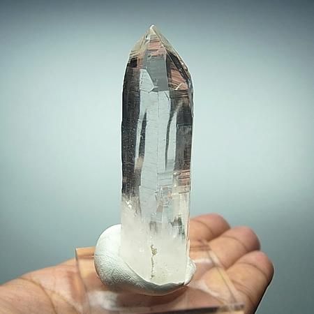 A transparent and lustrous crystal with beautiful striations and facets. The four sides of the crystal have high lustre while 2 sides have a slightly less shine. Slight inclusions are present in the lower part of the crystal. The crystal is in perfect condition with self healed base although it is not very distinct. Unearthed from Humla district, West Nepal.